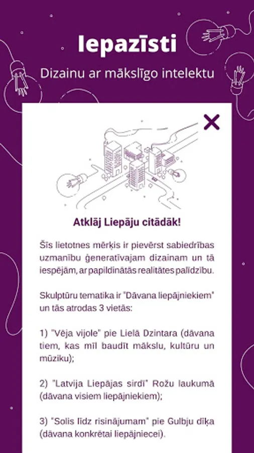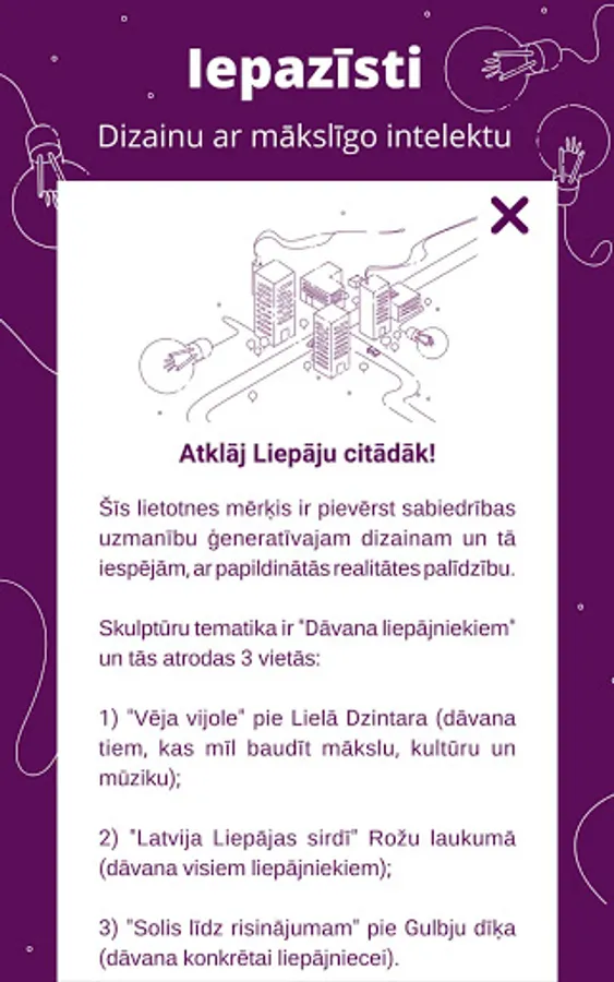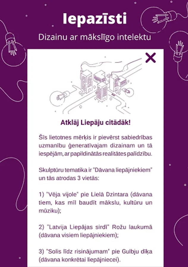 Liepāja AR is a free augmented reality (AR) application that allows you to see the objects of generative design in the urban environment of Liepāja.
