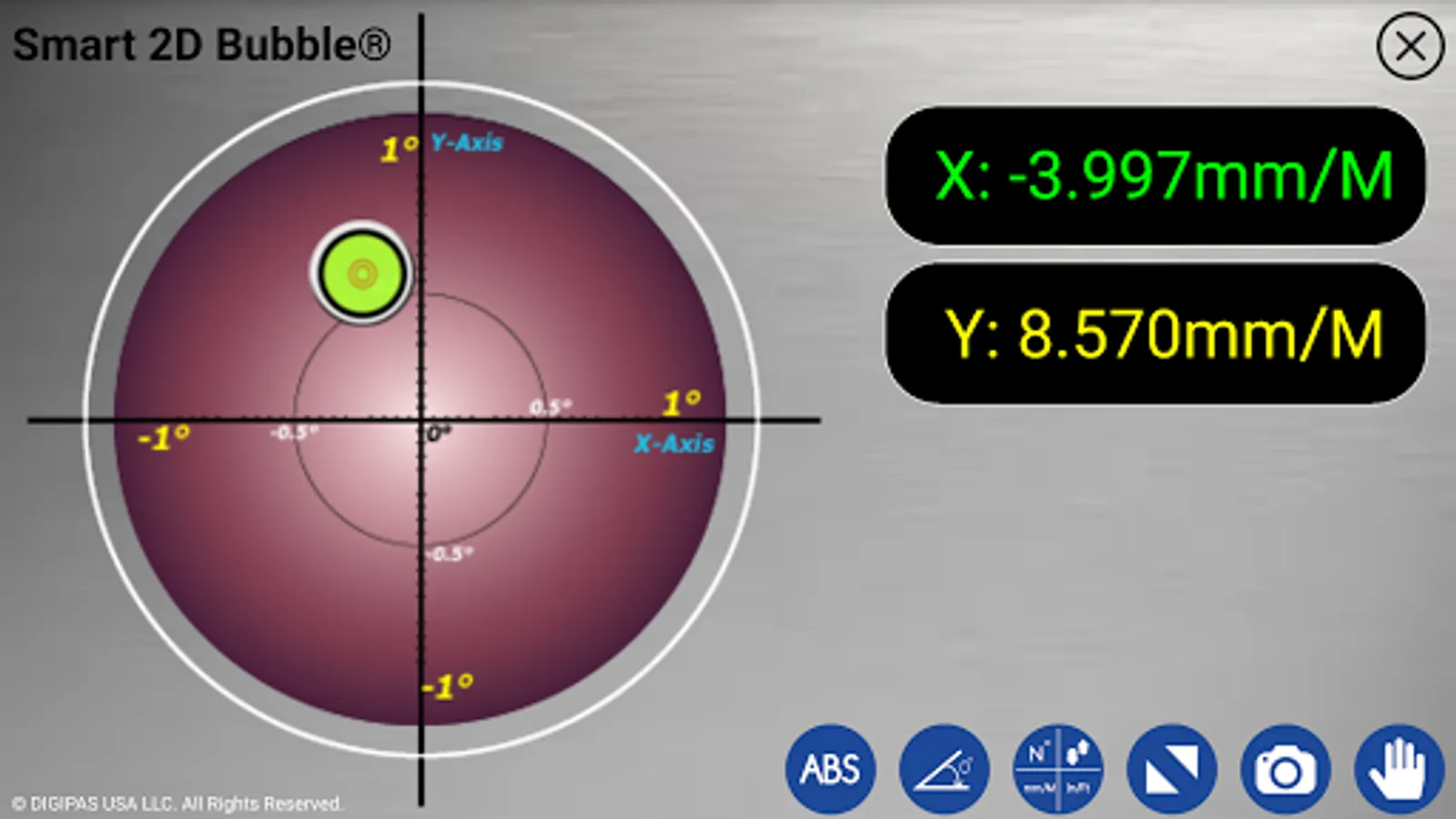 Digi-Pas® Mobile App is a user-friendly app, easily installed in any compatible smartphones or tablets. Users can fully utilize the remote wireless Bluetooth mobile connectivity to various Digi-Pas® 2-axis precision digital levelling devices. This highly affordable app instantly empowers machine installers to perform remote 2-Axis simultaneous levelling task, angle measurement and 2D concurrent alignment activities with speed, precision and as a 'one-man-operation' that traditional single-axis digital or 'bubble' levels are unable to match.