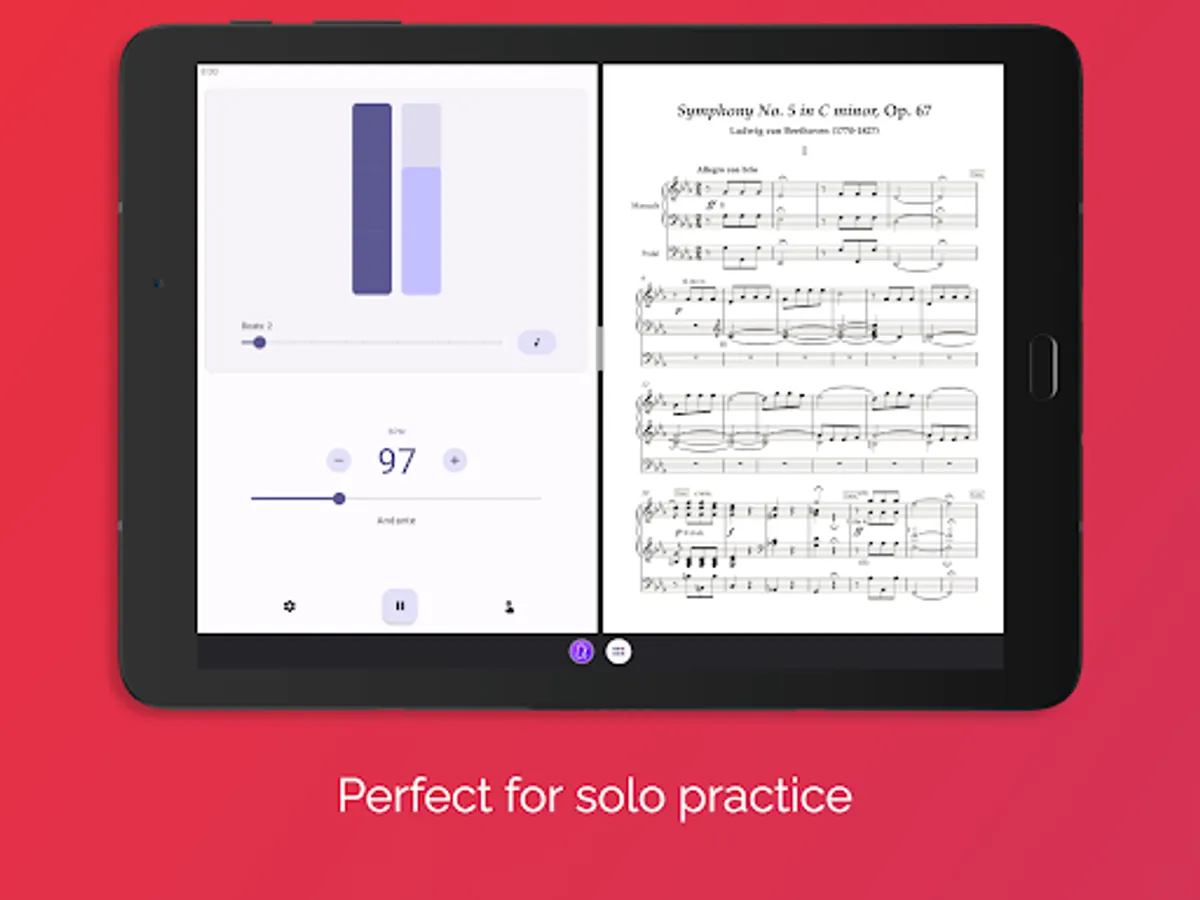 Group rehearsals run smoothly when everyone can monitor the tempo visually with the large beat display on phones, tablets or Chromebooks. If you prefer to hear the beats, pick the sound that better matches your style.