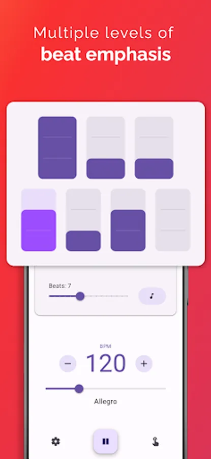 Music lessons feel simpler when the app gives you total control over the tempo. Set a precise BPM without effort. Choose from up to 16 beats and tap each beat to switch between 3 levels of individual emphasis or to mute them.