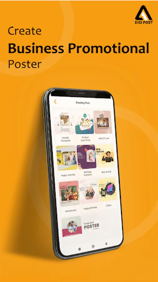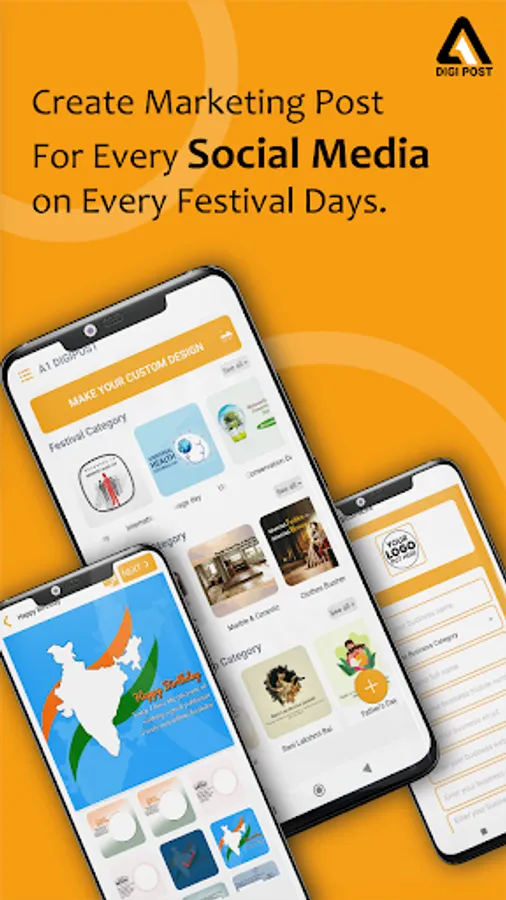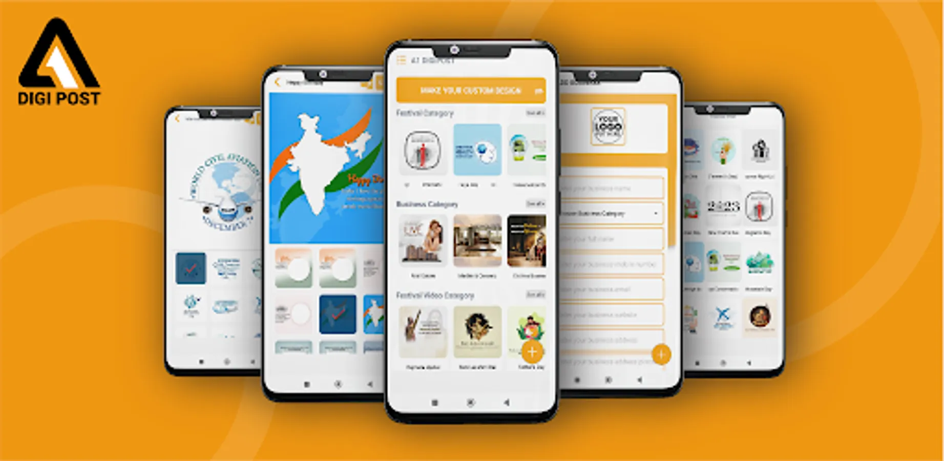 You can use your android phone to make your own business name and image Digital poster in minutes. All you need to do is upload the photo and save it to your gallery. The Digital Post - Business Name & Image Poster Maker app will also add festival photos onto your dashboard.