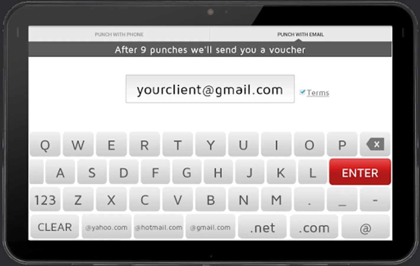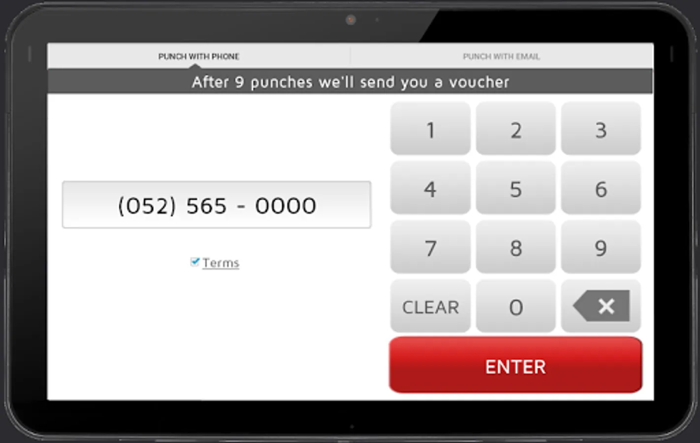 Operating on an android, tablet or phone, the customer’s cell phone number is entered upon his/her purchase. Once entered, the ‘punch’ is recorded. No need to fumble through the wallet to find the card or hold up other customers!