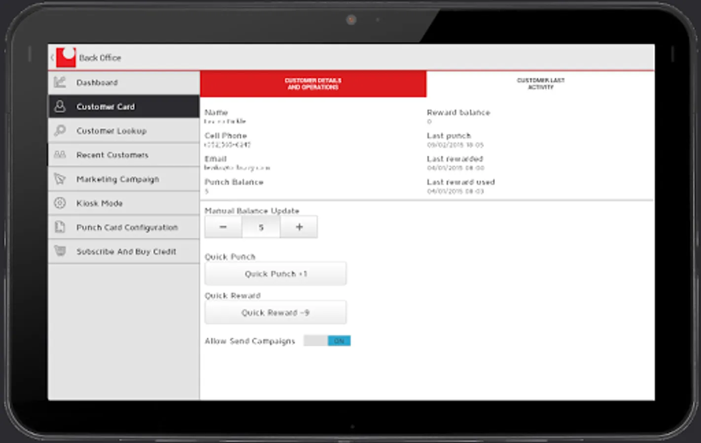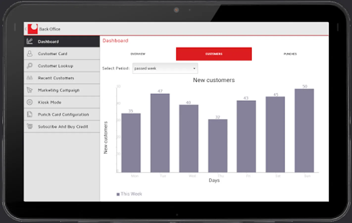 The back end is user friendly and packed with interesting features. You can view statistics and graphical reports, you can customize your punch card’s design and you can constantly monitor any customer’s punch cards.