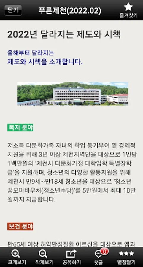 In addition, the ‘Pureunjecheon’ smartphone service provides an automatic notification function when a new book is published through the bookshelf, as well as an easy subscription to past articles, so you can subscribe to useful information again.