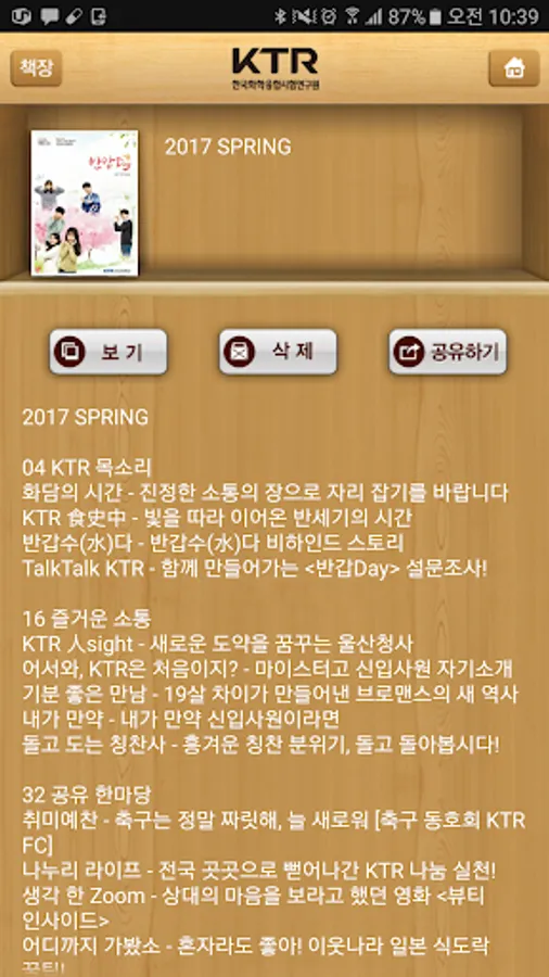 Articles Twitter, Kakao Story, Kakao Talk, email, text shared features