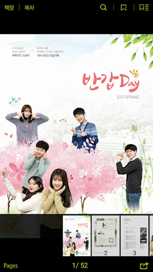 If the views eBook function - horizontal view, zoom view, search, bookmarks, table of contents, thumbnails, as if Twitter, Kakao Story, Kakao Talk, email, text shared features
