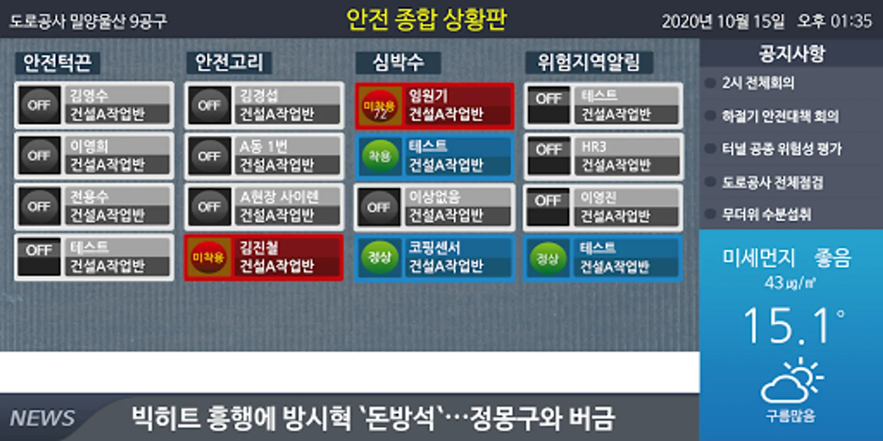 1. You can check and manage on-site workers and the safety comprehensive bulletin board.