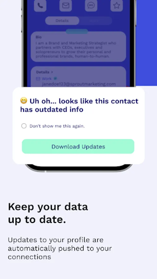 Live Update: Never have stale or out-of-date information for your contacts again! Whenever you update your profile your new details are automatically pushed to your connections on Jot™.