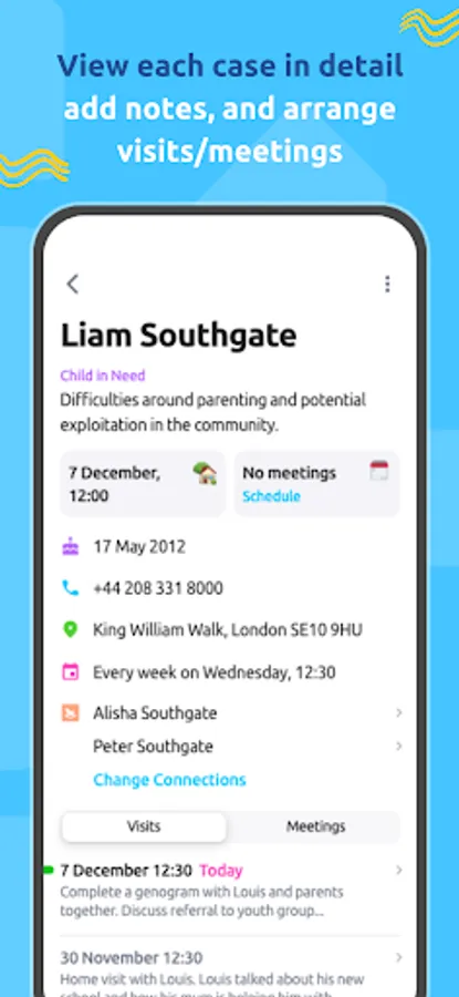 All your visits, meetings and assessments in one place with timescales that update automatically. Never worry about making a new things to do list again.
