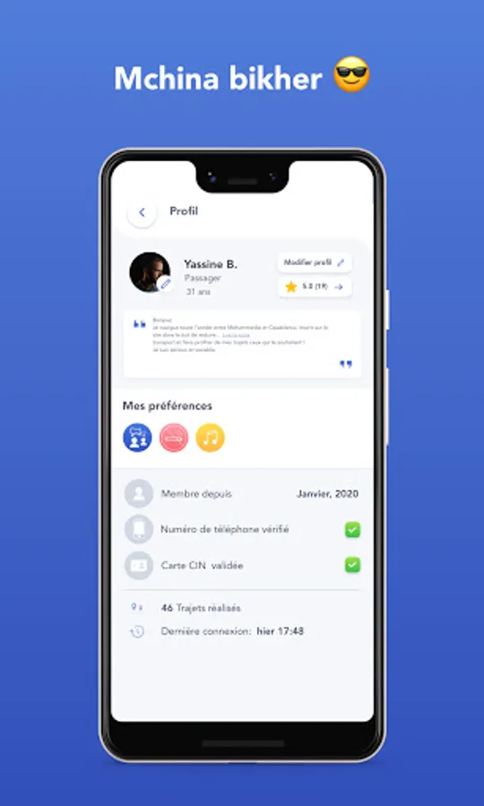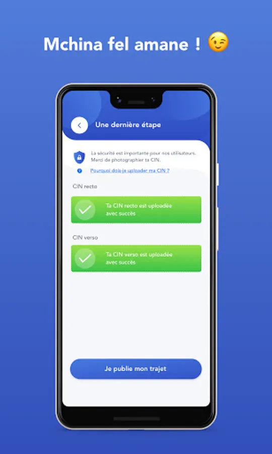 - Your trips are made with confidence, all members are checked thanks to the collection of CIN and evaluated after each trip.