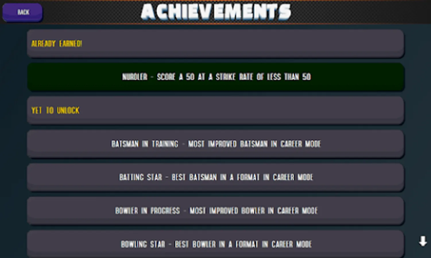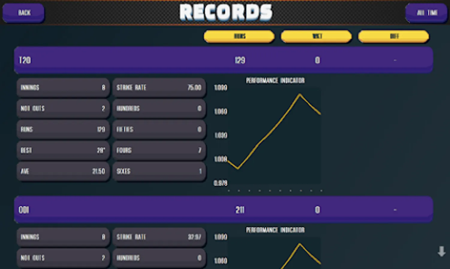 * 9 modes: Slog, T20, ODI, Tests, Beach, Hong Kong Sixes, First Class, series and tournaments