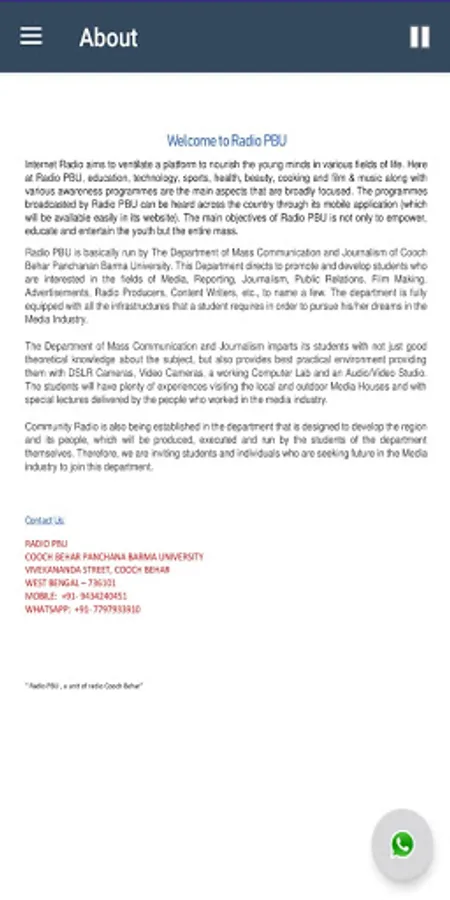 Online radio service of Cooch Behar Panchanan Barma University