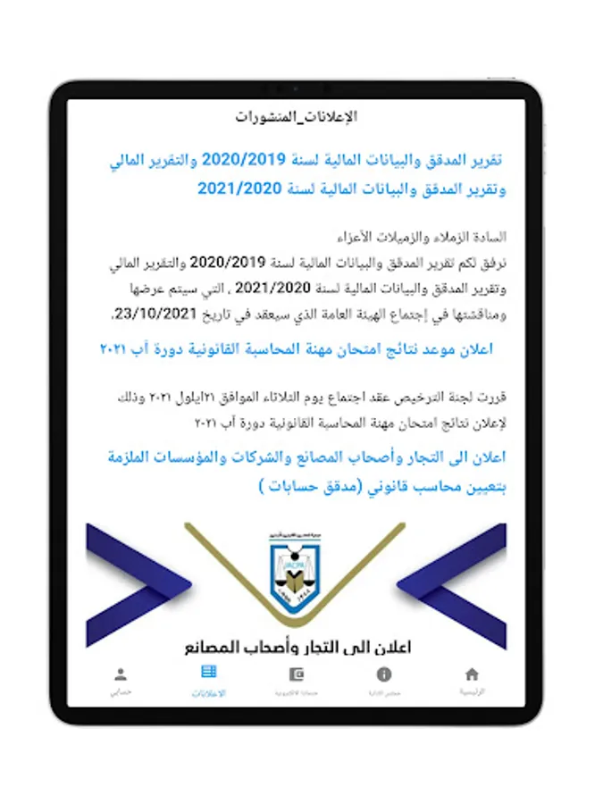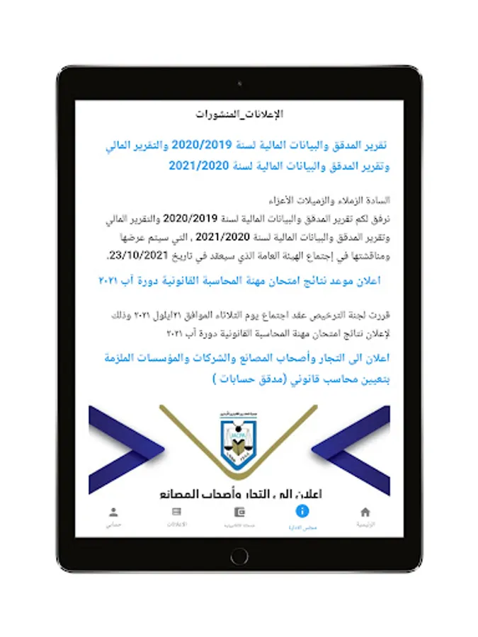If you are a member of the Association of Certified Public Accountants, our mobile application will help you find all your needs to communicate with the Association with ease and ease. It doesn't matter whether you are at home, work or on the road. As long as you are subscribed to the application, you can connect and inquire with the association about any question that comes to you. While registering in our mobile application, you will be able to continuously view information related to the profession, members (Chartered Accountants), books, magazines, and professional and scientific periodicals issued. Our mobile application facilitates the speed of documenting the budget approved by the association through the QR code feature and gives you confirmation of the authenticity of the authenticated signature. Our mobile application is an easy to use application with many features. It is easy for you to view the advertisements periodically by simply clicking on the advertisements icon. The mobile application gives you the option to change your account information at any time. Our application helps us organize the practice of the legal accounting profession and ensure adherence to accounting standards, auditing standards and the approved standards of professional conduct in a way that contributes to protecting the Jordanian national economy, raising the scientific and professional level of Jordanian legal accountants, and enhancing Jordan’s position Arab, regionally and internationally in this field.