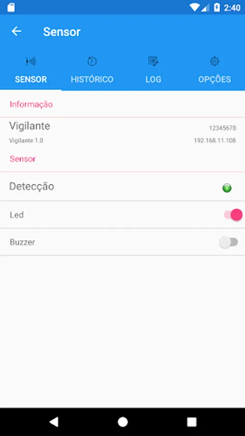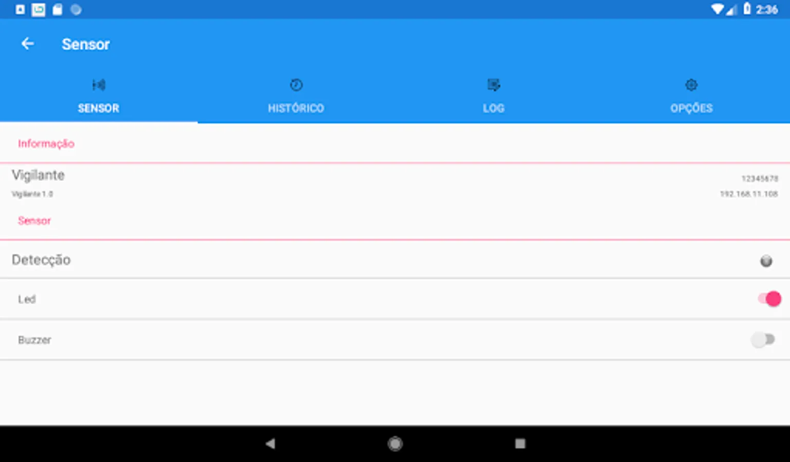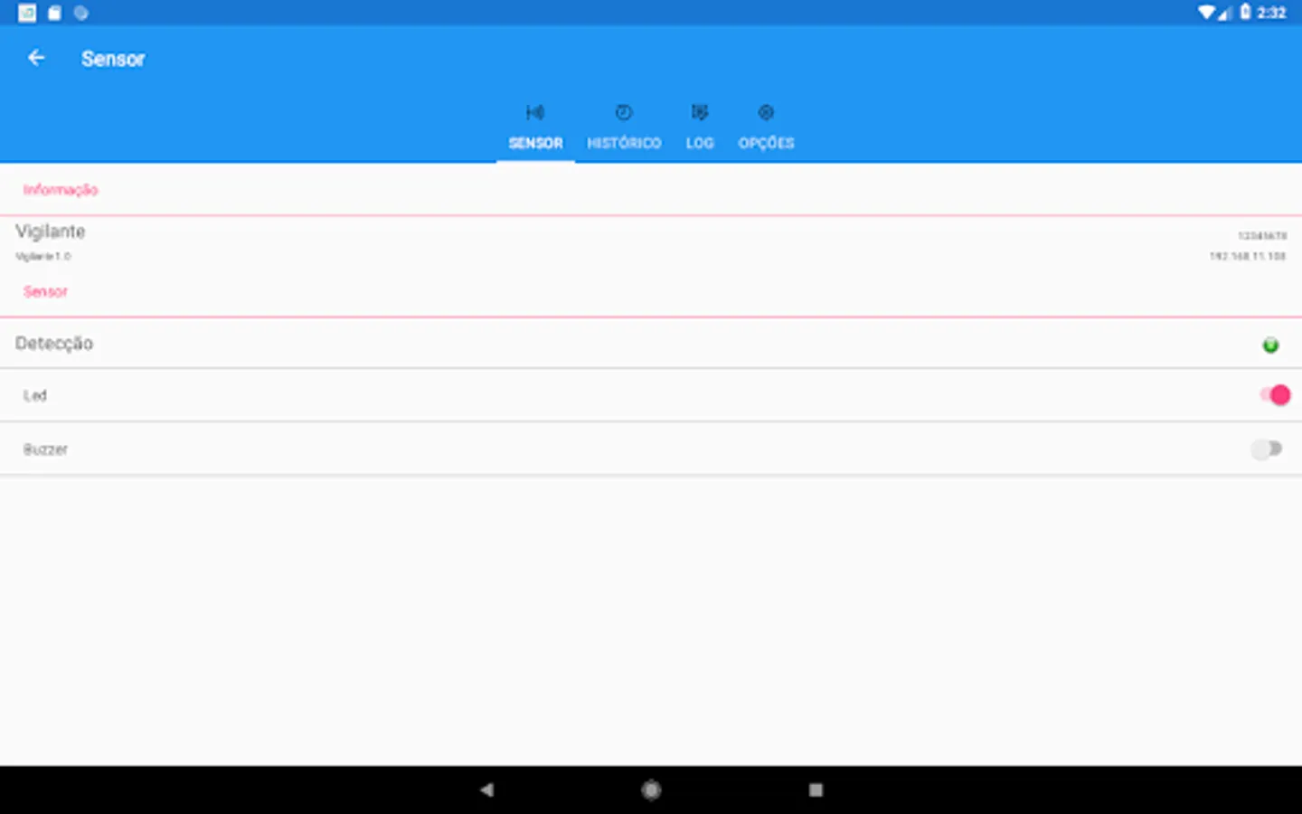 Application interface with the Watcher sensor Digistar Telecommunications S.A.