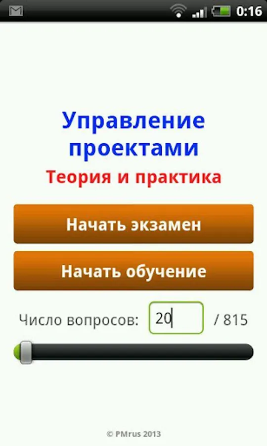 It is the first application with the tests on project management in Russian, which is characteristic of the "first wave" of project management in Russia.