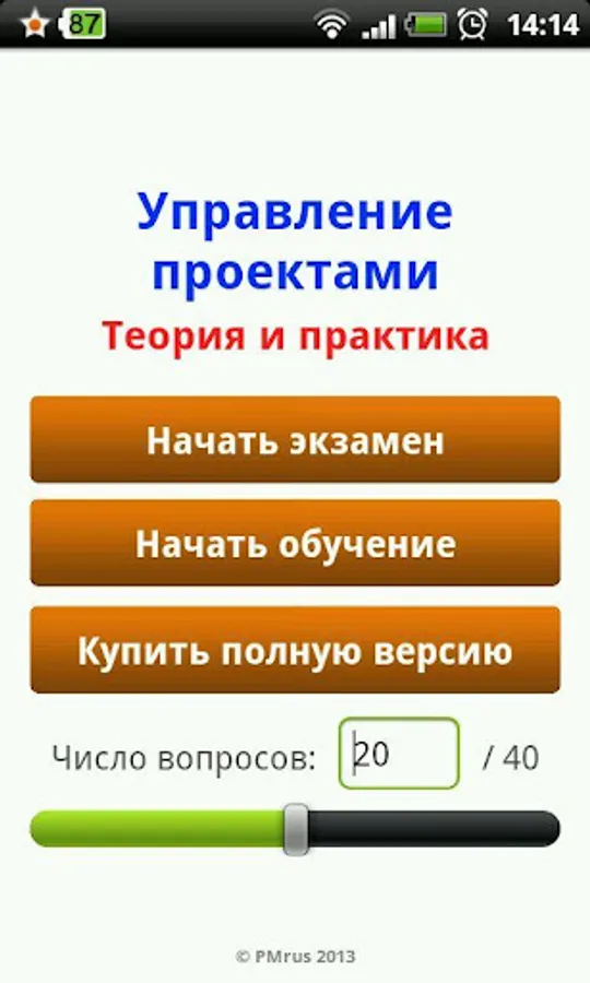Tests are presented in project management (methodology PMI). Most effective for those who are preparing to pass the certification exam on the degree of PMP. Or wish to improve their competence in project management for the professional work