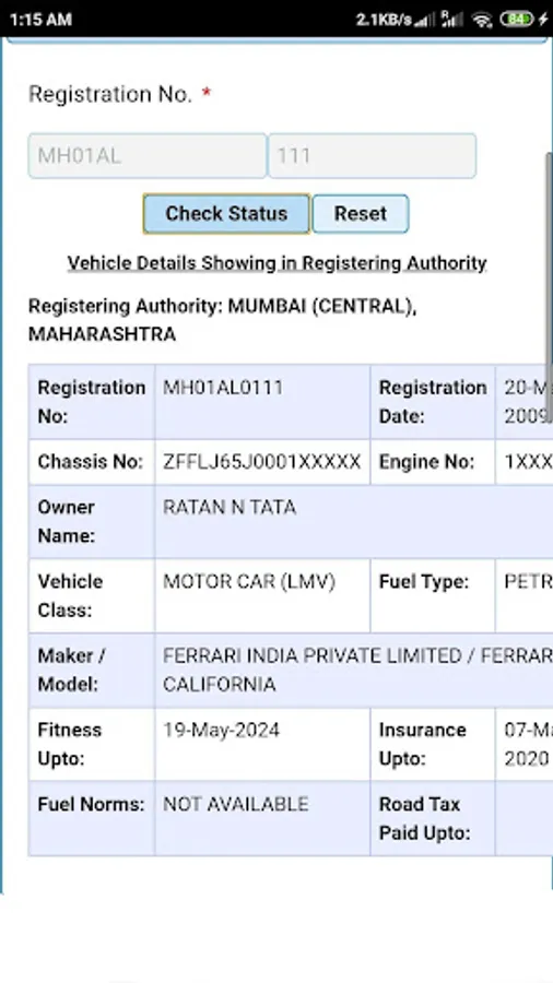 Please note - Not all vehicles' owner data is yet available in the public database, so if you don't find any vehicle, don't downvote please. It will show up only after your RTO office uploads that vehicle's data.