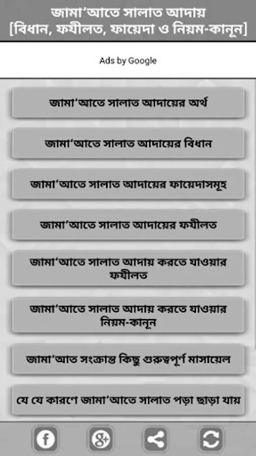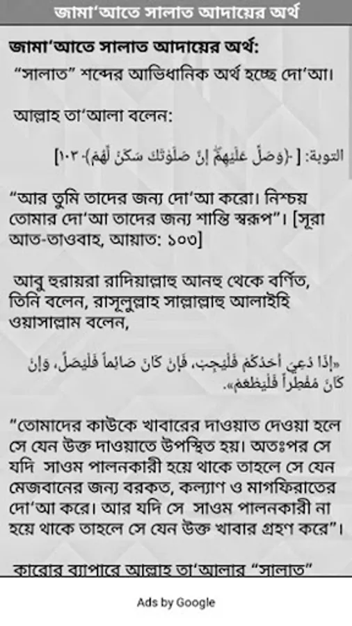 জামাতে নামাজ আদায়ের বিধান, ফযিলত এবিং ফায়েদা, সহীহ নিয়ম-কানূন কুরাআন ও হাদীসের আলোকে আমাদের এই ইসলামিক অ্যাপ। নামাজ শিক্ষা প্রত্যেক মুসলিম নর - নারীর জন্য ফরয। নামাজ শিক্ষা নিয়ে এবারের আয়োজন আামদের এই অ্যাপটি। নামাজ প্রত্যেক মুসলমানকে প্রতিদিন ৫ বার পড়তে হয়। তাই নামায শিক্ষা আমাদের সকলকে গ্রহন করতেই হবে।