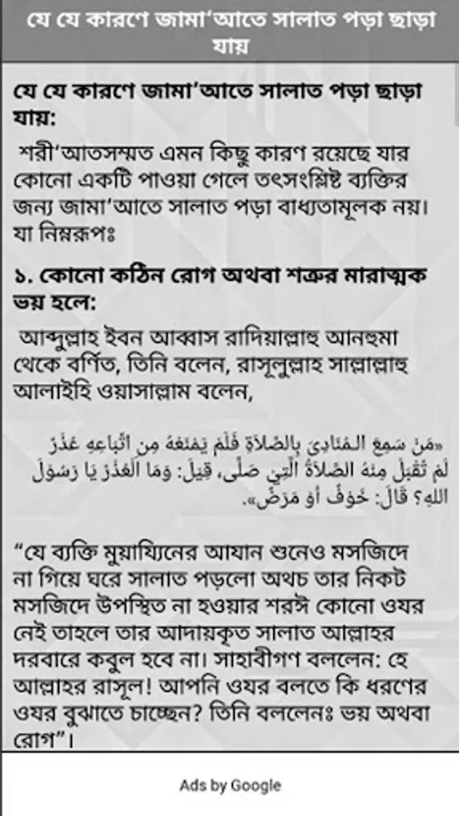 যে যে কারনে জামাতে সালাত পড়া ছাড়া যায়