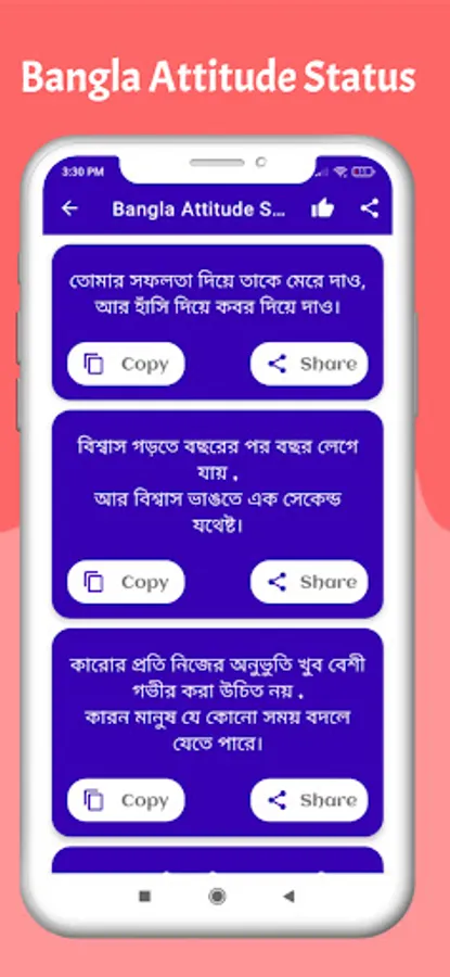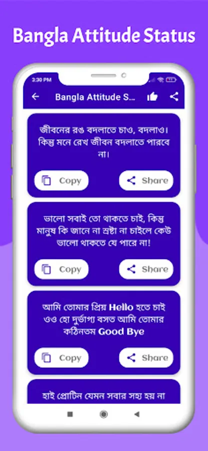 Bangla attitude status To get Bangla Facebook status or Bangla status check this website. You will get the largest collection of Facebook statuses in Bangla. Just copy and paste this status into your Facebook wall. Here you will find Facebook status Bangla best Bangla status attitude status Bangla FB sad status.