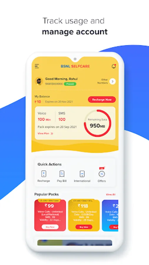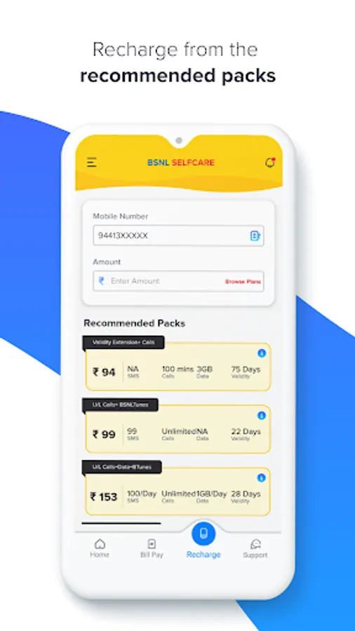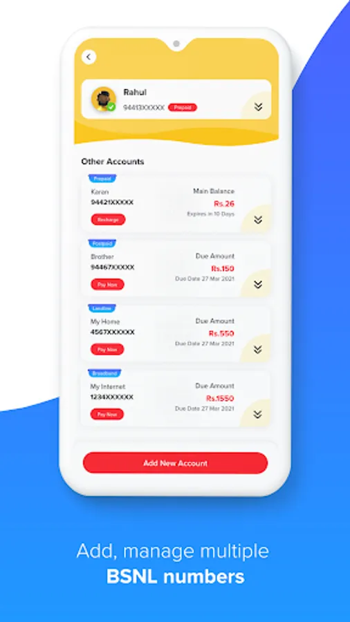 - Manage account: add any BSNL number of your friends and family to your account and manage its transactions.