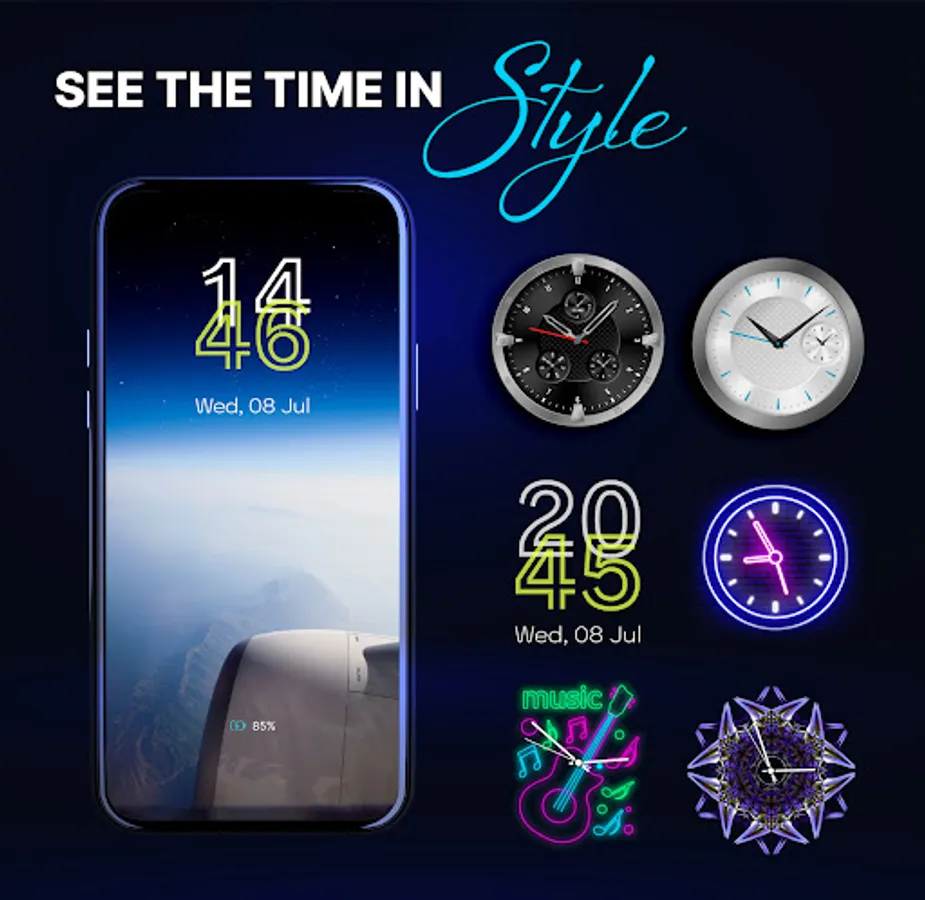 The numbers displayed on the clock are not only accurate but also eye-catching. Choose for yourself a favorite clock style from an inventory of 50+ new and stunning digital clocks.
