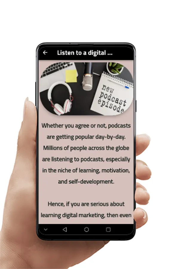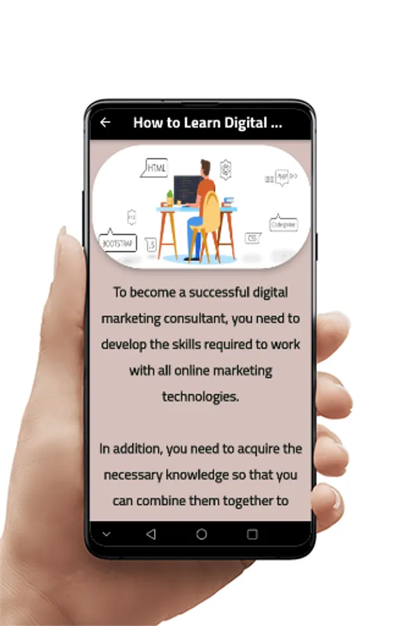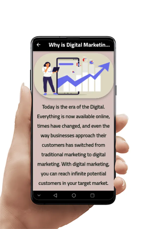 On this e-learning app for Digital Marketing, you have access to the most up to date tutorials and lessons on Digital Marketing. Whether you are a beginner at Digital Marketing or at advanced stages of Digital Marketing, you will love online learning with the Digital Marketing app.