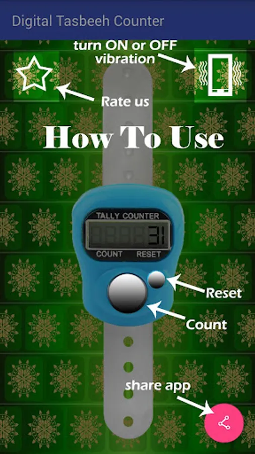 Digital Tasbeeh Counter is a real digital version of tasbih that helps muslims to worship their God, its a simple app which allows you to count/tally any activity you wish. Can be used for Tasbeeh (prayer) or just general counting like a tally counter.