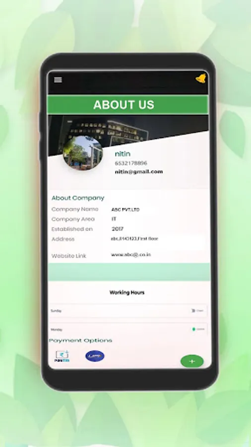 Add Business details, image, offers, and social media links, web URLs, and all contact details.