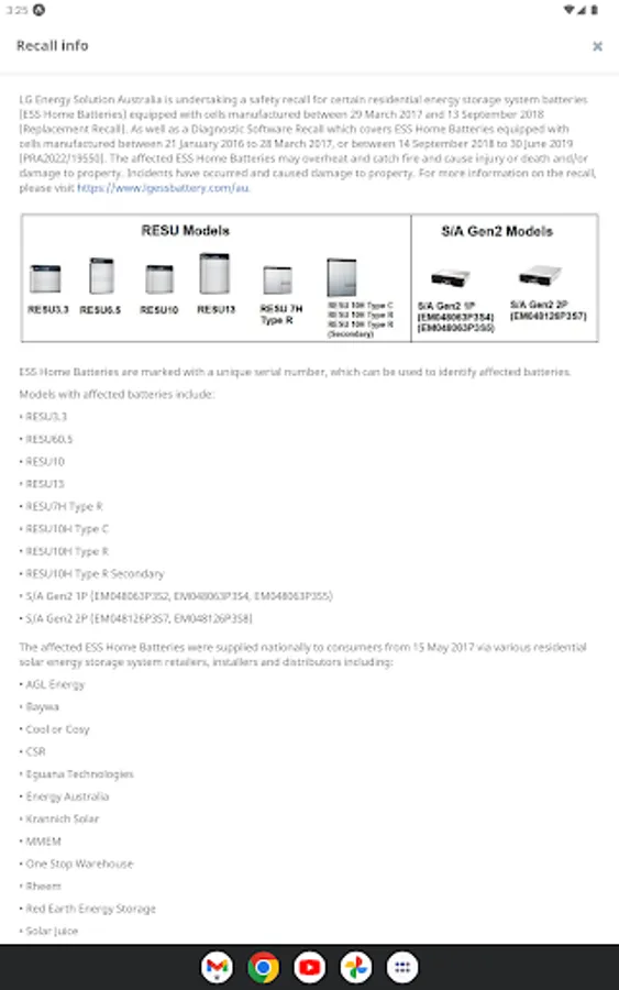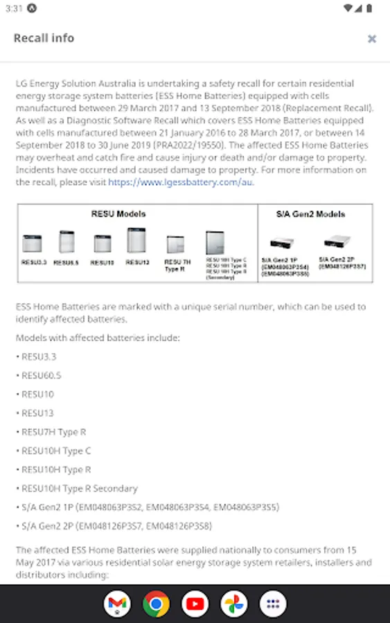Whether you are a homeowner or a tradesperson, we urge you to use our app to check the safety of your LG or LG Chem branded battery. Our prizes range from $50 to $10,000!