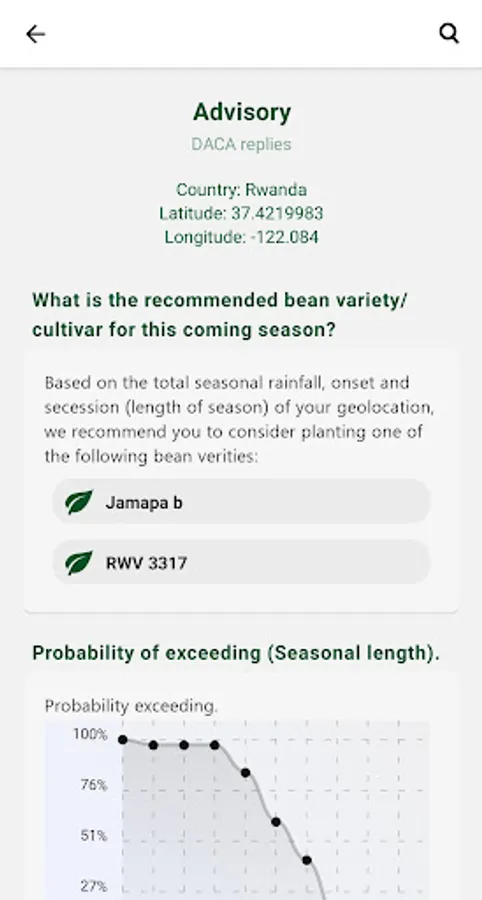 Digital AgroClimate Advisory (DACA) is a mobile and web platform meant to reach millions of agriculture value chain actors with information, services, and products that are tailored and location-specific to everyone's needs in relation to climate, crops and farm type.