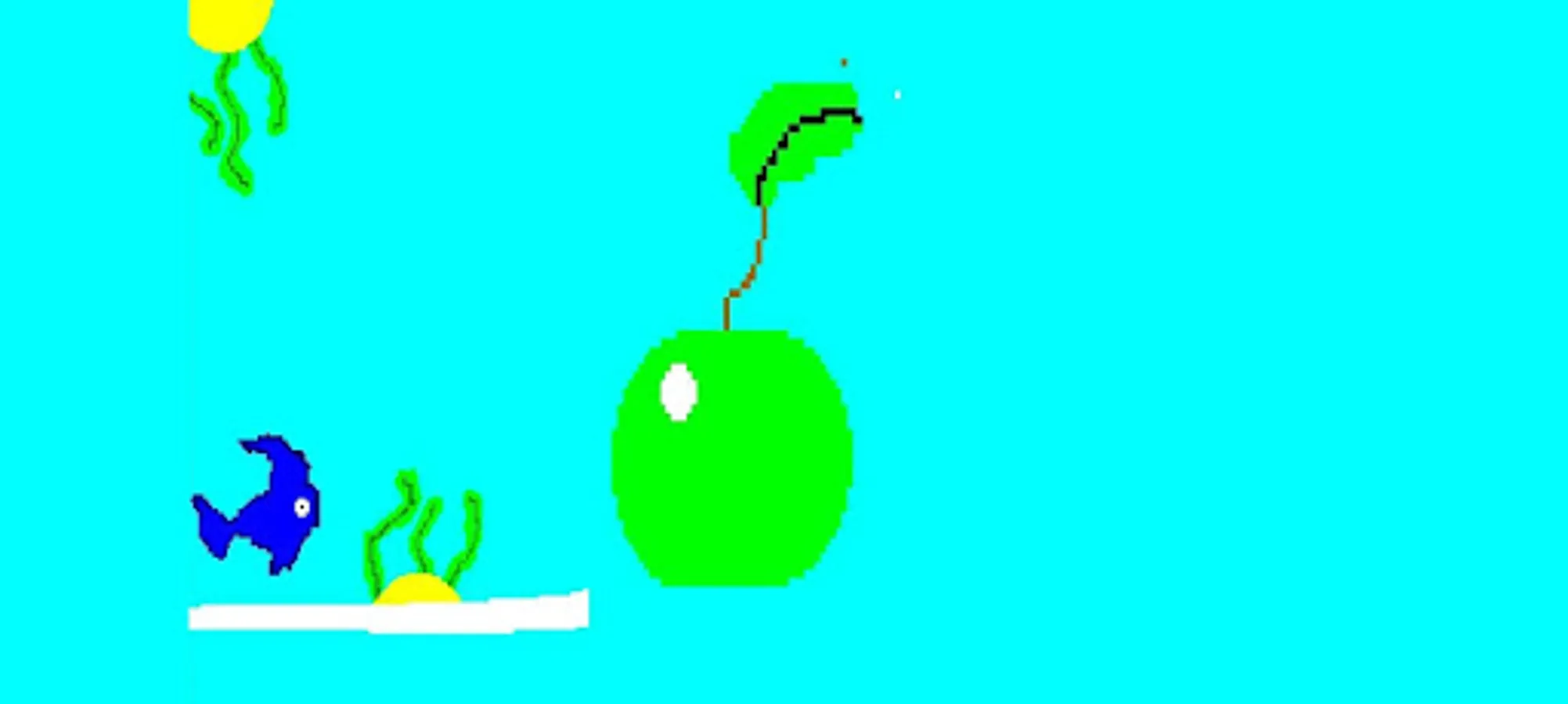 A shark swims here. to go to the next level you need to swim into the sponge bob pineapple