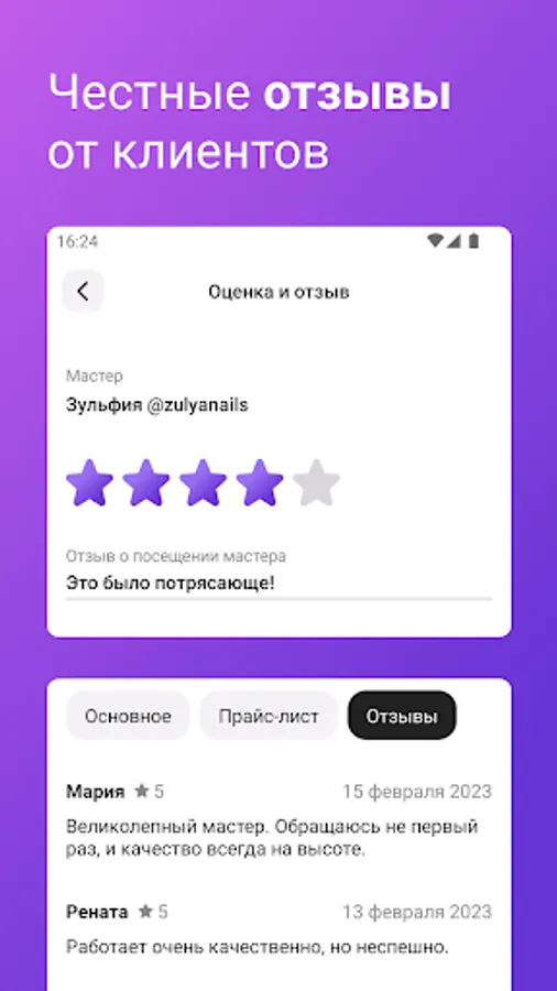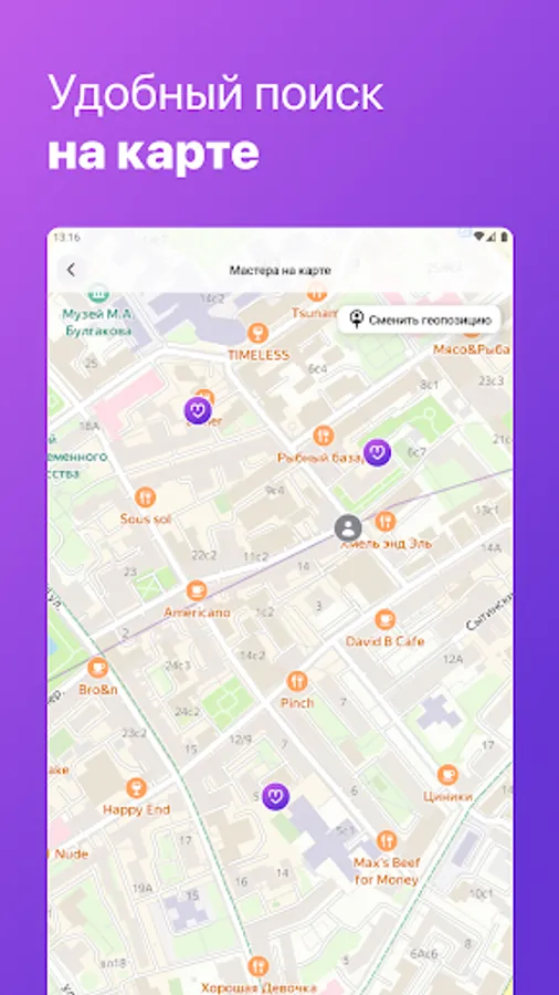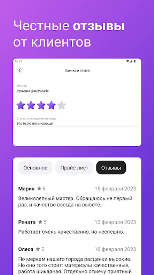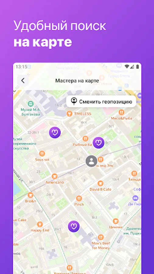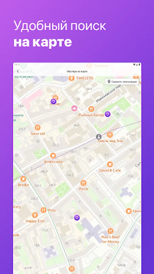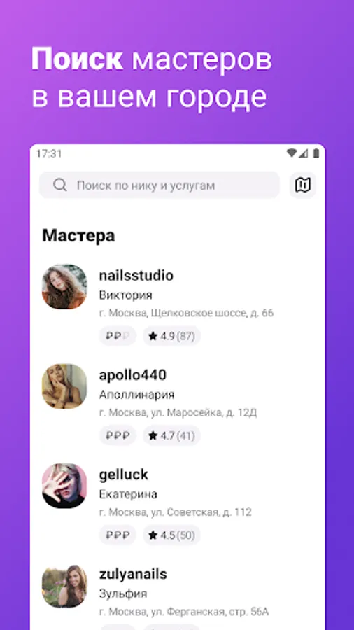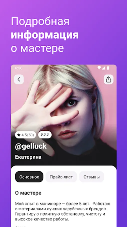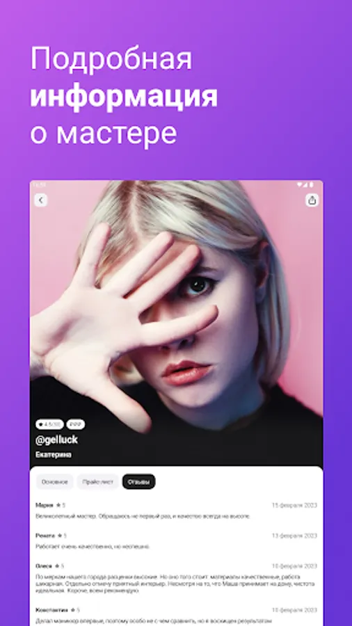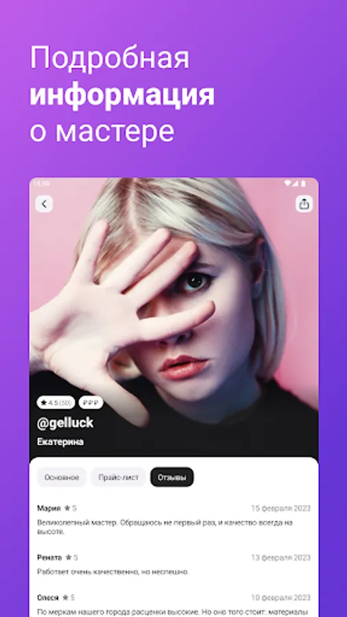 · Detailed information about the masters with examples of work and photos of the interiors of workplaces so that you can choose the “right” master