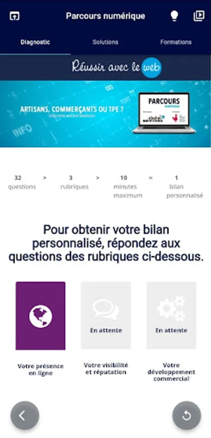 Thanks to a questionnaire, the aim is to assess the digital maturity of artisans, traders and local businesses and offer them personalized support thanks to an online dashboard that measures their progress, and offers them the opportunity to discover solutions. developed by French Tech start-ups and French publishers, and a directory of service providers to support them.