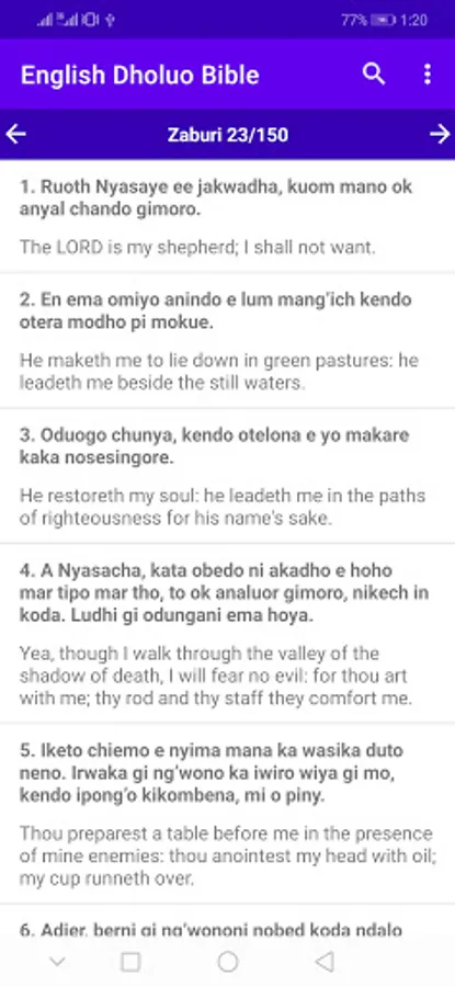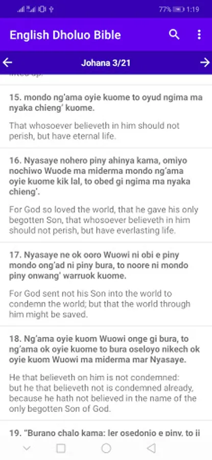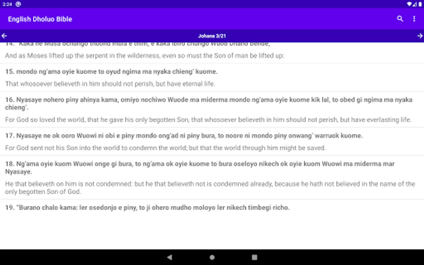Complete English and dholuo bible side by side - Muma Maler. This is a complete bible with both new and old testament in dholuo and English side by side for ease of read in both languages