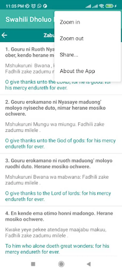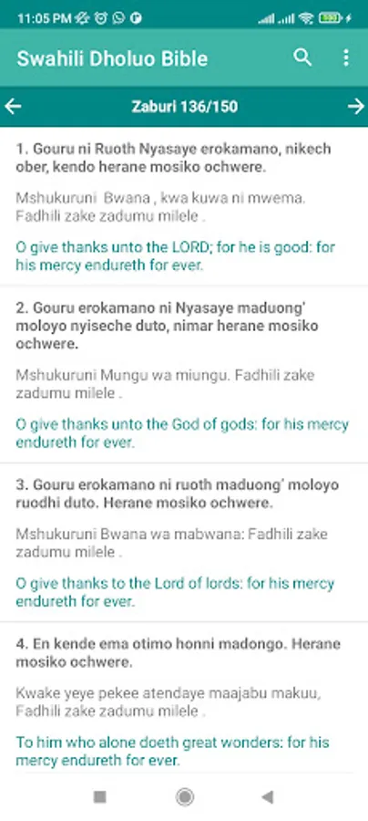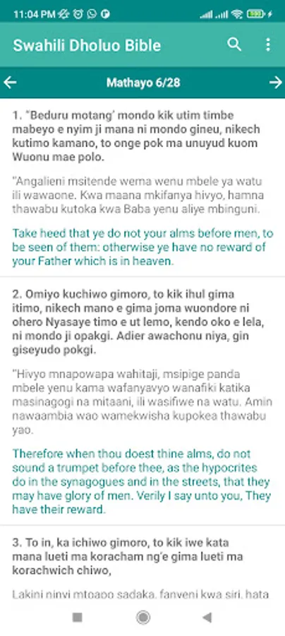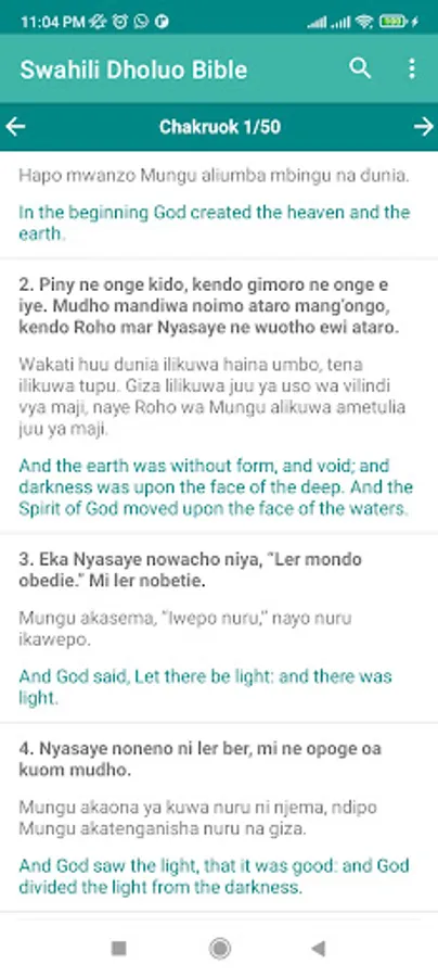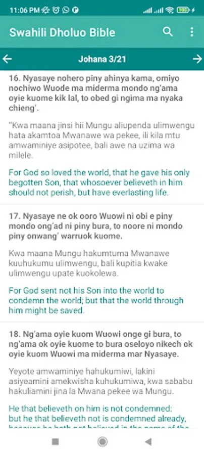 Luo bible with Swahili translation side by side for easy reading. The verses in dholuo are in bold, while the verses in Swahili are in regular font. The kiswahili text are from the SUV version