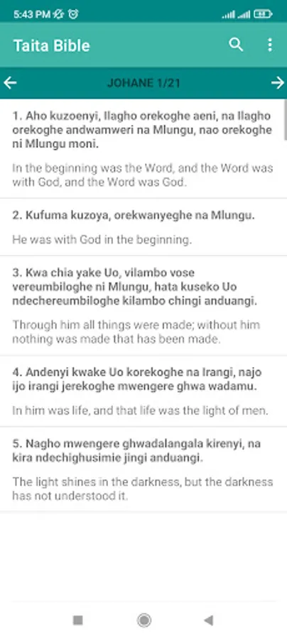 This is Bible in Taita language for the Taita people, with translations in English. It has both the old and new testaments. The Taita people are an ethnic group in Kenya's Taita-Taveta County. They speak Kidawida or Kitaita, which belongs to the Bantu language family.