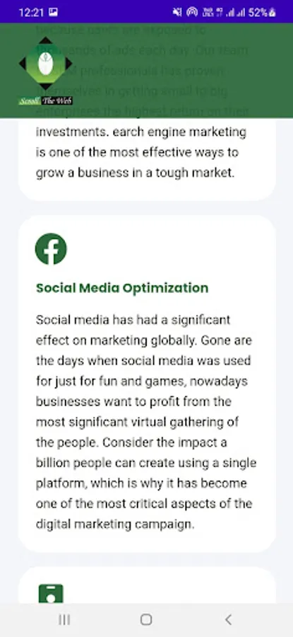 We have been in the Digital Marketing industry since 2013. So, we have seen all ups and downs of the market; we have witnessed all changes in Google's algorithms. We have grown with Google. Contact us today at www.scrolltheweb.com for a free consultation. We have served clients across the USA, UK, Australia, India, China, Russia & many other countries. Here in this app, you will read the latest news in Digital Marketing, the latest trends that are going on, SEO & Marketing tips and tricks for this year, and a lot of more information on Digital Marketing.