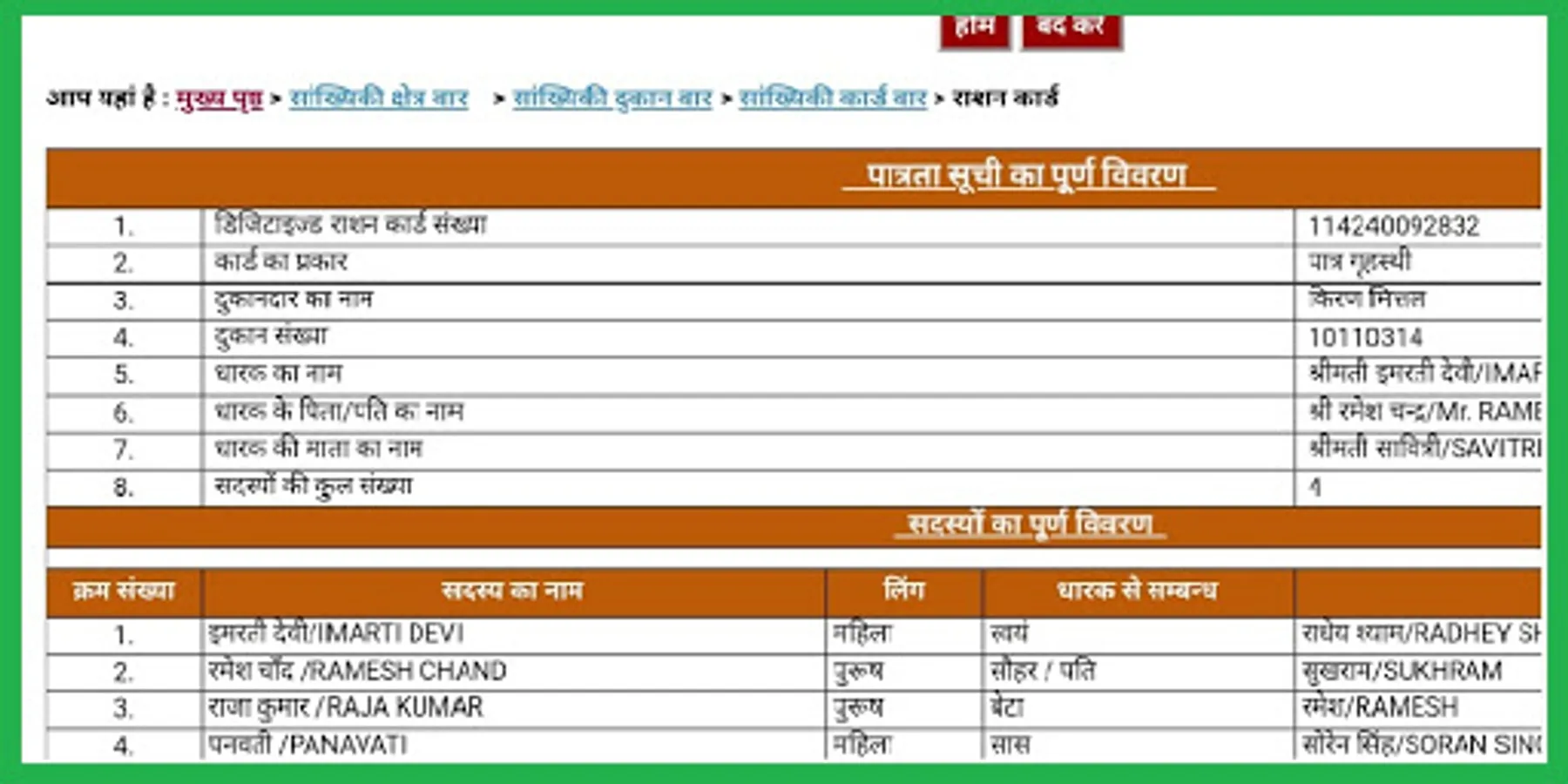✔️ Eligible household ration card list