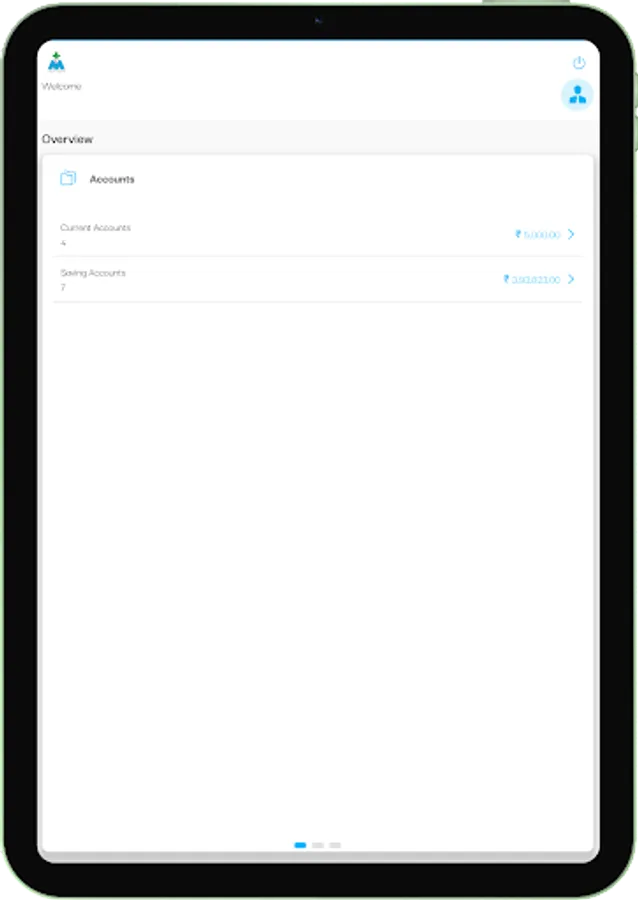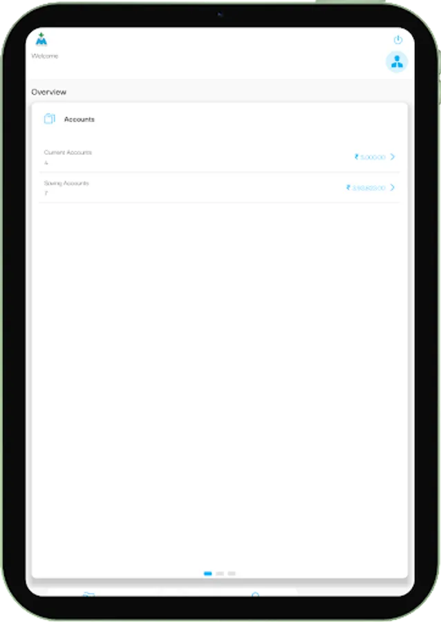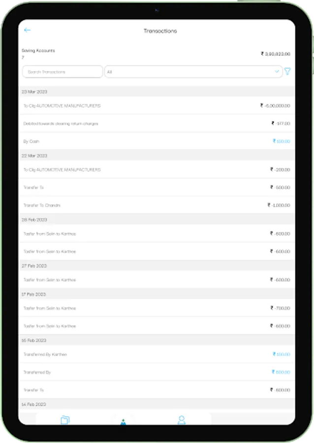 Customers can view the all the accounts they hold including Deposits and Loans. All transactions in the respective accounts is visible to the customers with advanced search features on transactions.
