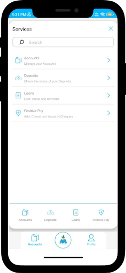 Customers can view the all the accounts they hold including Deposits and Loans. All transactions in the respective accounts is visible to the customers with advanced search features on transactions.
