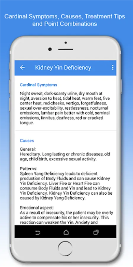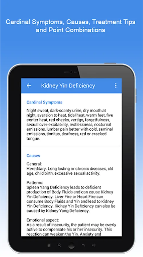 Get unlimited access to all 409 Acupuncture Points, 100 TCM diagnoses and more than 4000 symptoms % diseases with TCM diagnostic with purchasing the full version. With the full version you can backup your saved data.