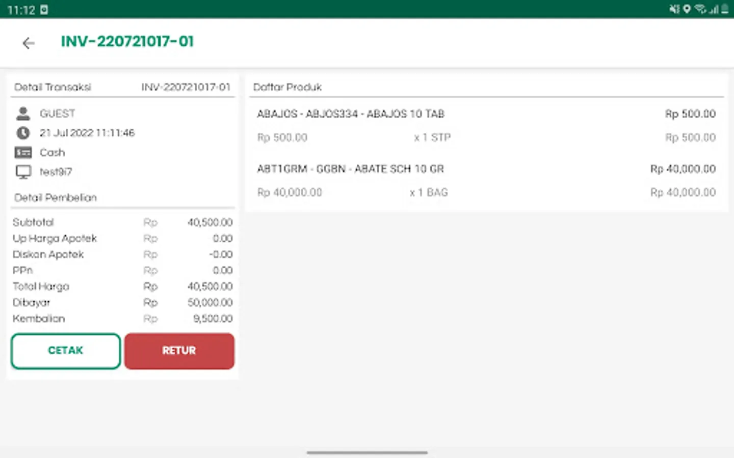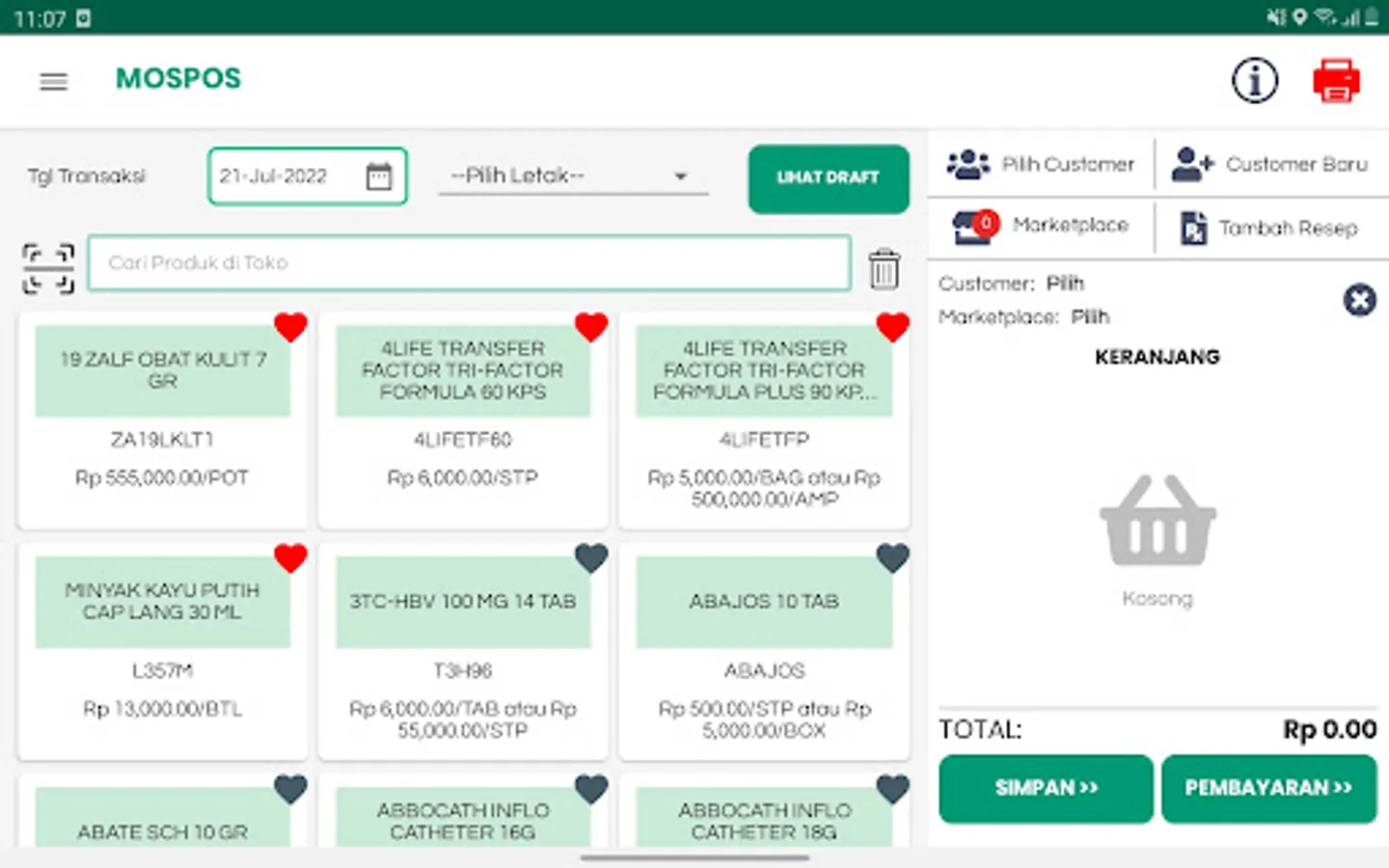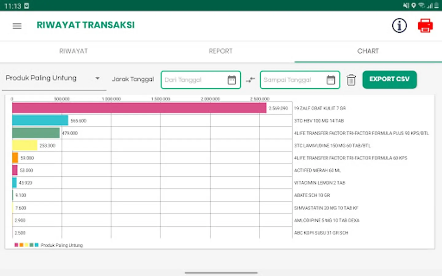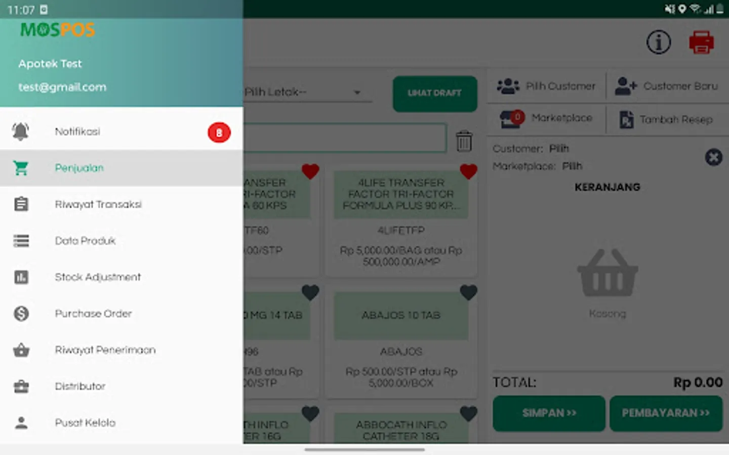 Point of Sales (POS) application or pharmacy cashier for the entire process from procurement, storage, transactions (sales), and reports.