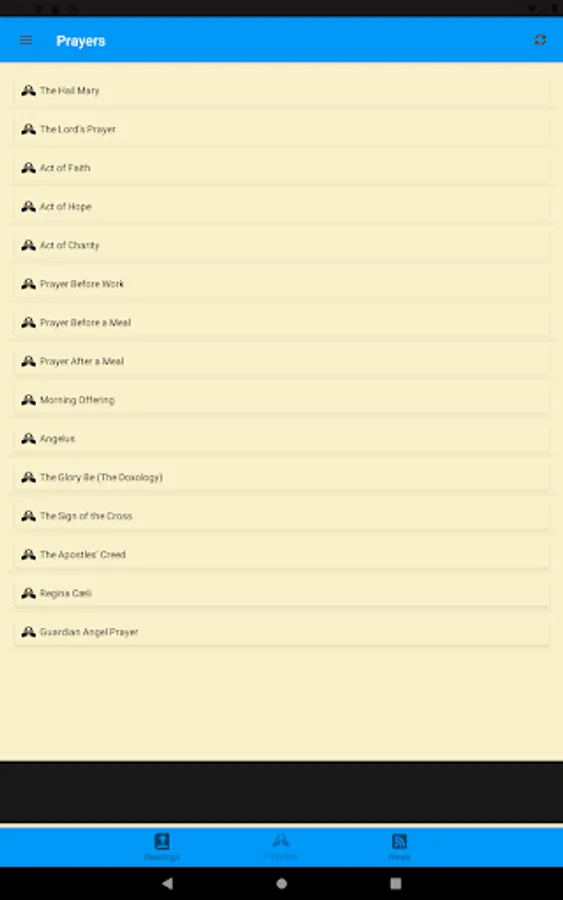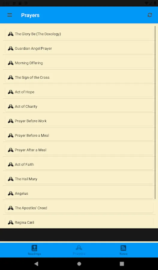 The basic free version of Being Catholic has links to regular daily readings and catholic news as well as common prayers.