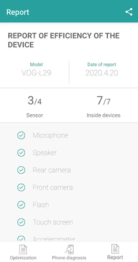 Care Pack Diagnosis App is an application that allows you to activate Care Pack screen protection service and at the same time check your phone’s hardware, sensors and other components, to make sure everything is operating properly.  With Care Pack Diagnosis App you will receive a full status report online, and within just minutes you’ll get an accurate objective info on the condition of particular elements of your device including: screen, microphone, cameras, flash and speaker without leaving home!