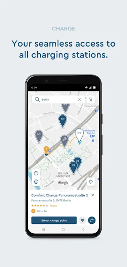 Use the integrated QR Code Scanner in the app or use your charge card to access the charging station.