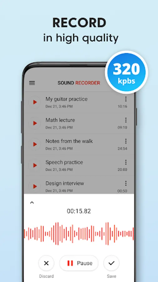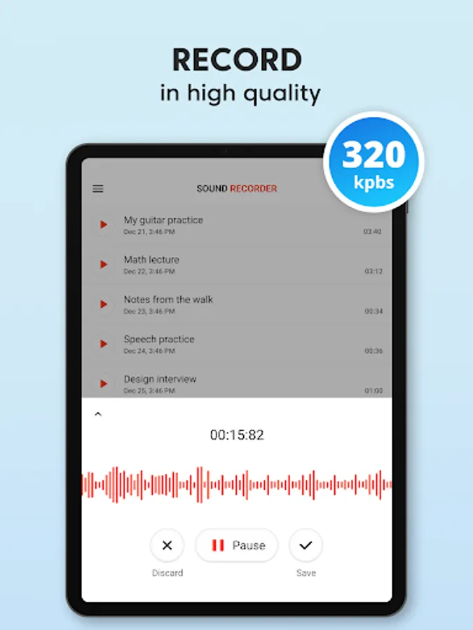 If the recording is interrupted, it is automatically saved with the default name, so you don't lose the captured voice or music. Otherwise, you can always save the recording on your terms, or discard the recording if you want to give it another try.