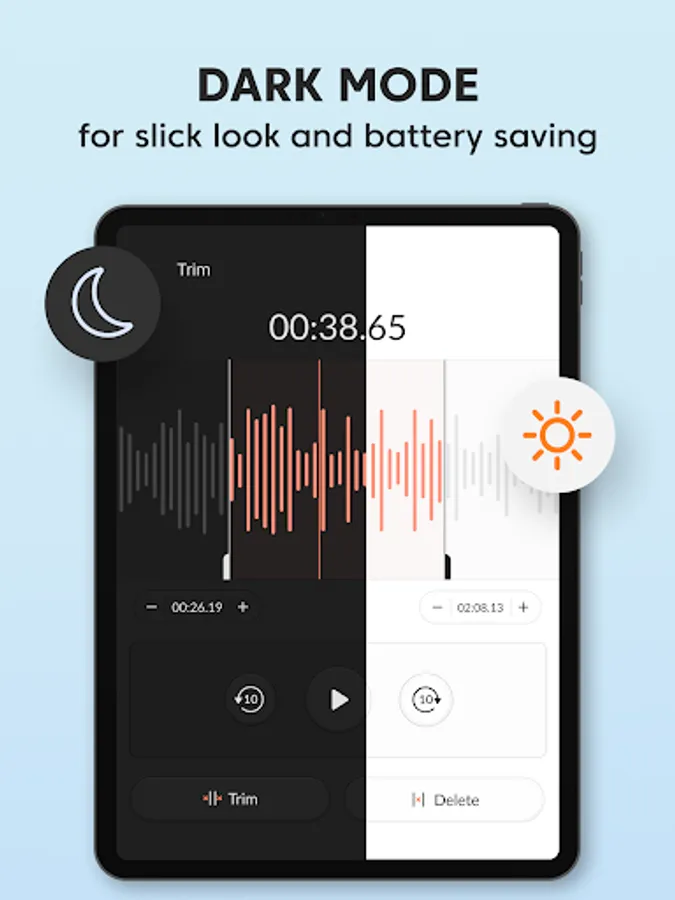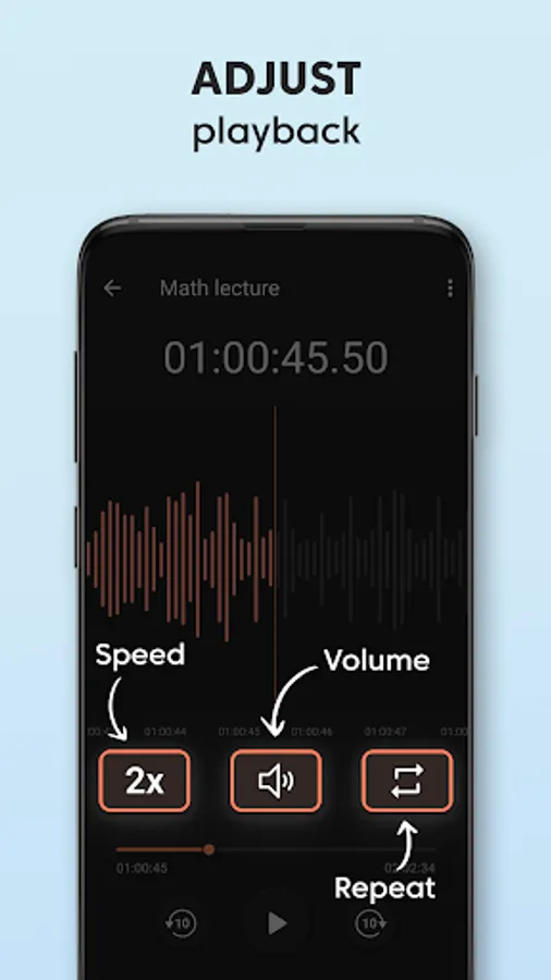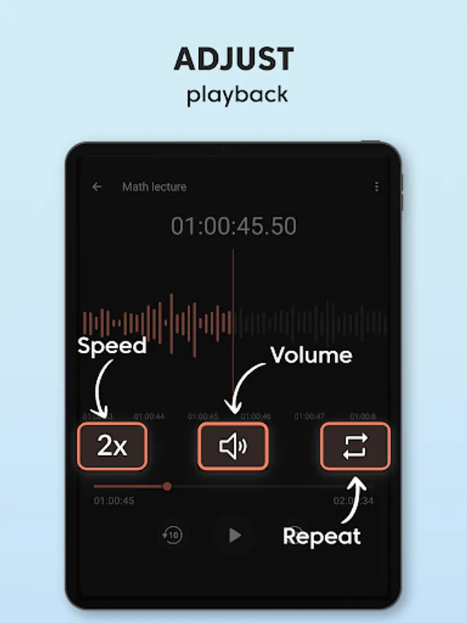 Get the highest grades with the recordings of lectures and seminars in your pocket. Even if the speaker is far and background noise interferes, the microphone configurations in the app ensure the high quality of the audio.