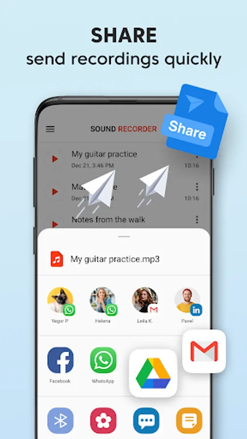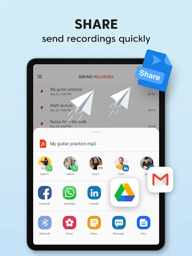 Capture melodies before they go out of your mind to share them with the world. The Sound Recorder Plus will perfectly replace your microphone in this situation.