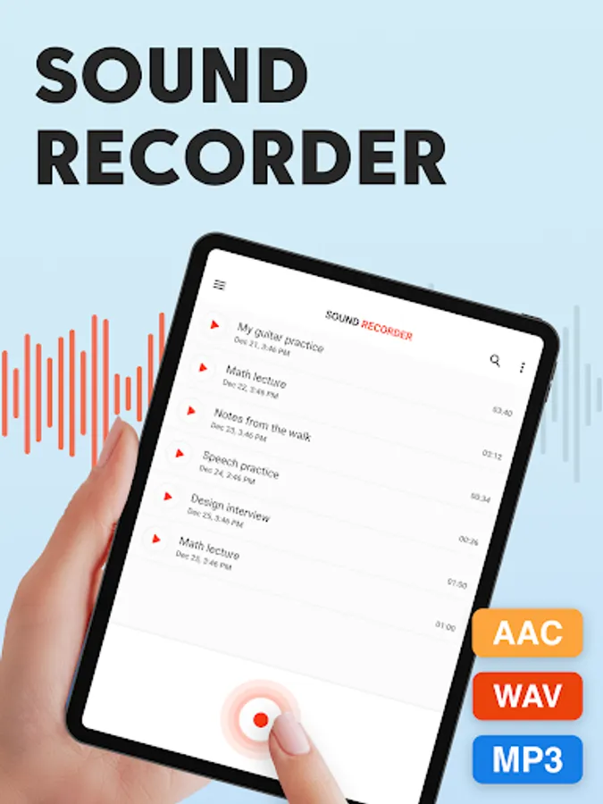The Sound Recorder Plus supports the AAC and WAV voice recording formats.